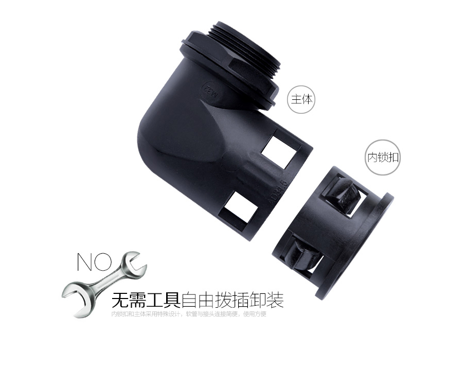 使用方法: DS-SM-W 型軟管直角接頭是軟管的配套產品,可接入設備箱體上,也可以根據選用螺紋接入進出口為內螺紋的電動設備上,只需軟管插入接口即可。