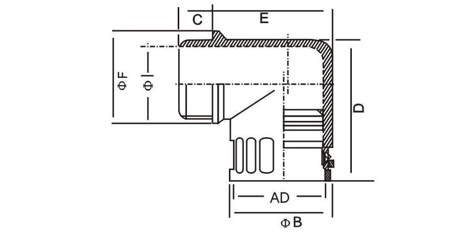 | 型 號 | AD適配軟管外徑尺寸 | 螺紋規(guī)格(德制) | 螺紋外徑 (mm) | I(mm) | C(mm) | E(mm) | F(mm) |