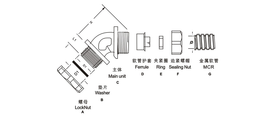 產品材質: A、C、F部位均采用優(yōu)質鋼制成。D為鐵皮壓鑄制成。